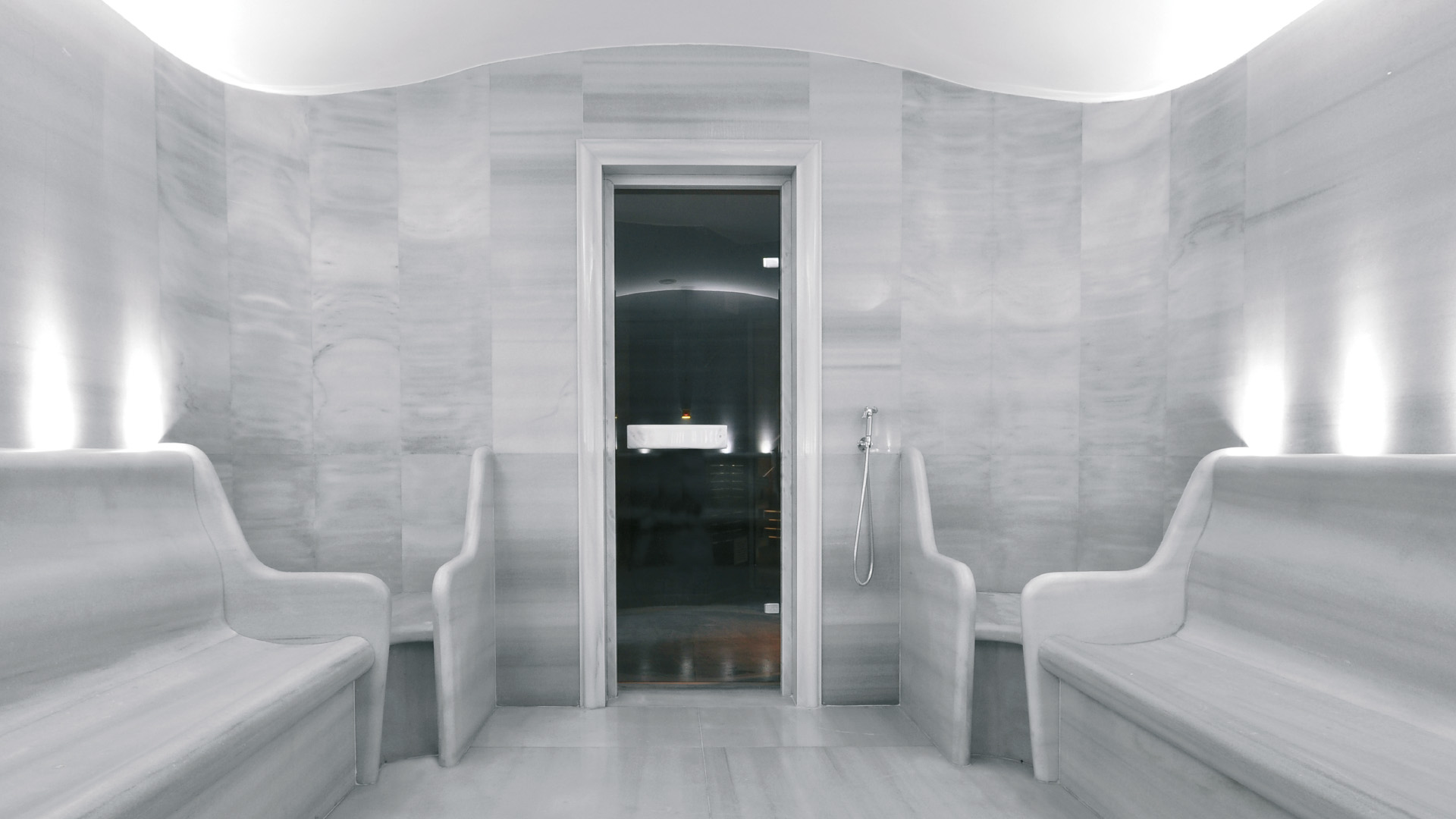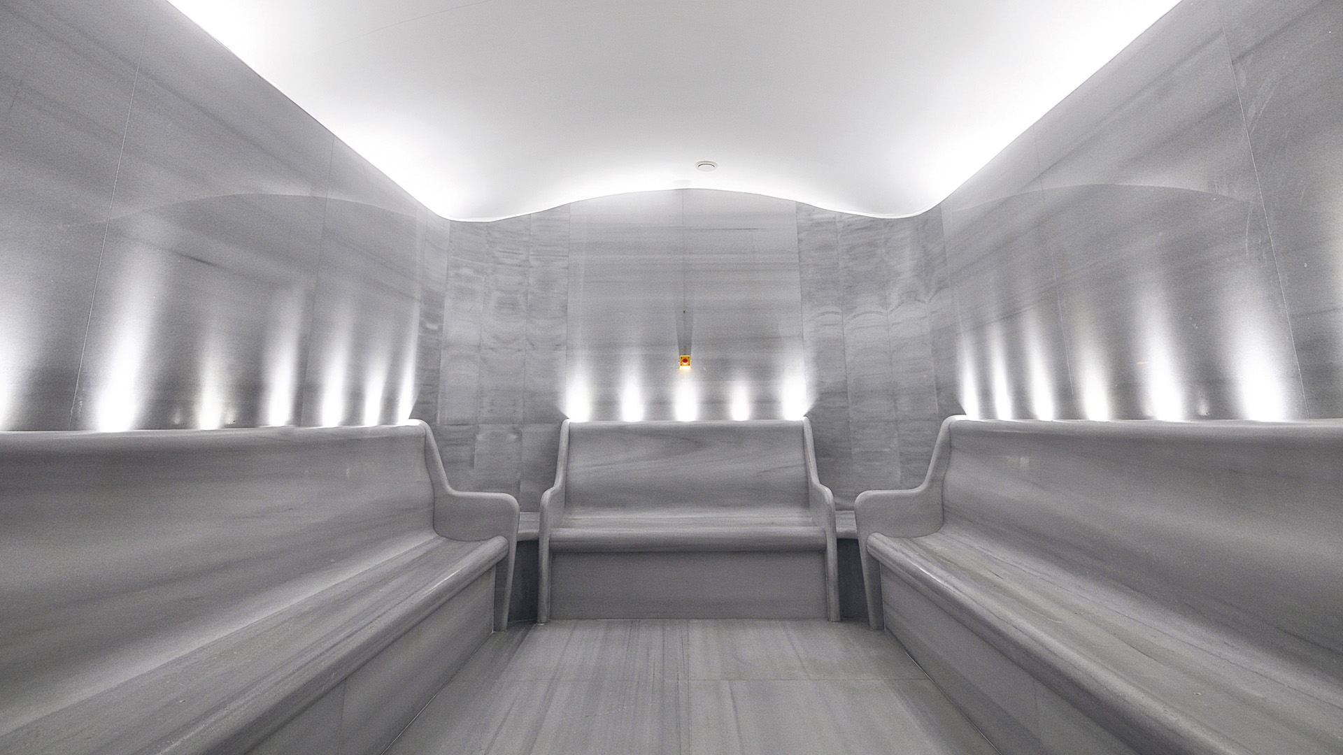 In steam rooms which are produced with Seva the humidity is always %100. With a special sensor the humidity and temperature is always measured and by the result of this datas the high efficient / low maintenance required steam room generator works and the humidity and temperature is being held between the ideal gap. By the practical shower systems your guests can also shower without getting out of the steam room. Our domed ceiling has a special angle of drain for your guests to prevent dropping of condenced water. If desired we have also ability to drain all surfaces automatically. By effective ventilation to prevent suffocation of your guests, presents them a comfortable atmosphere and also increases the quality of the time in steam room. Indirect illumination is fictionalised with the latest technology without being effected by the humidity and temperature.